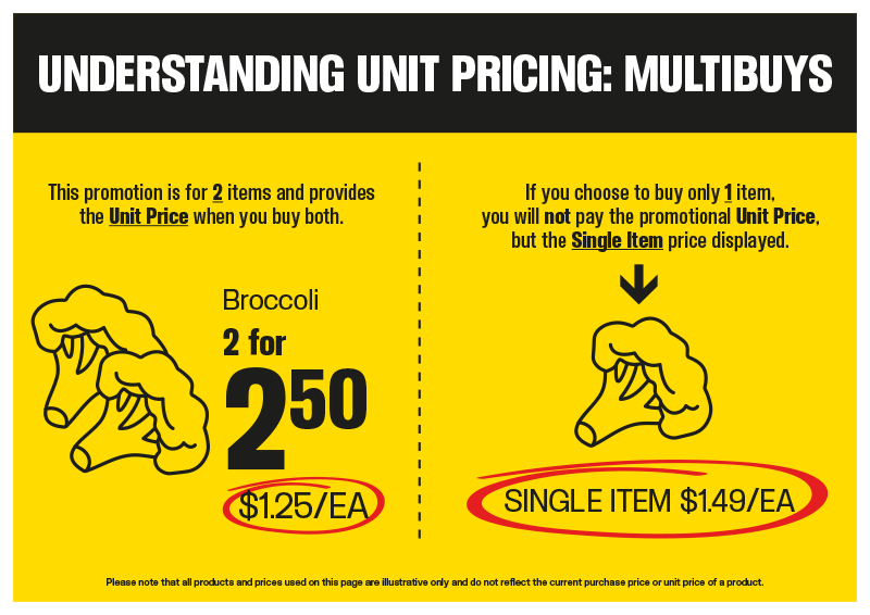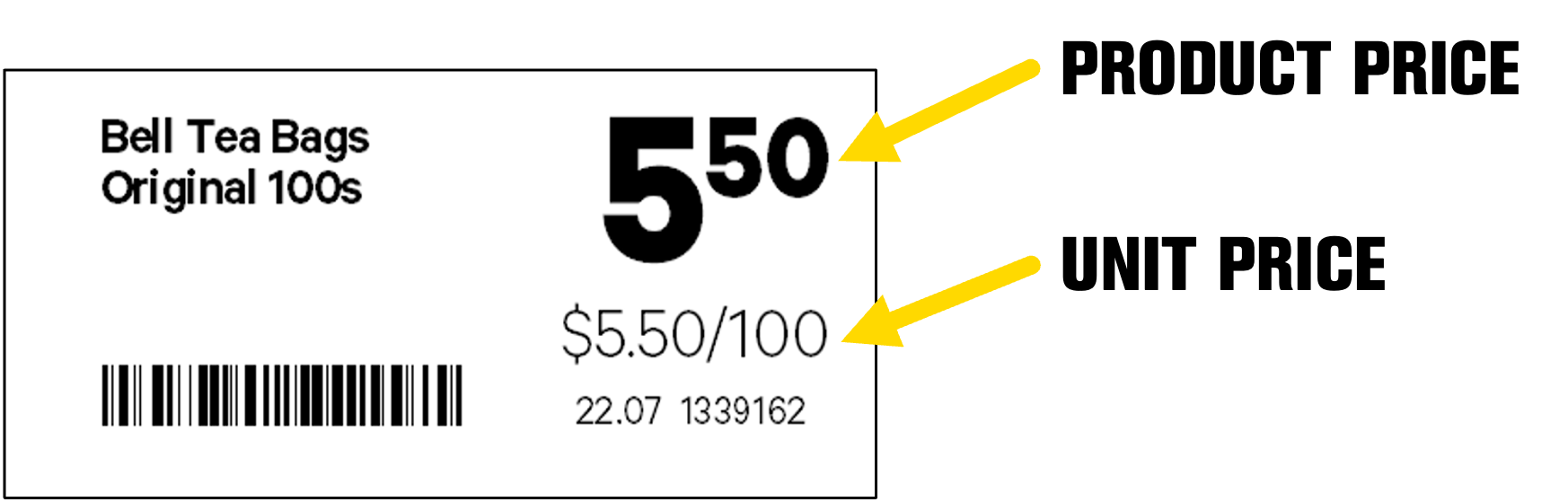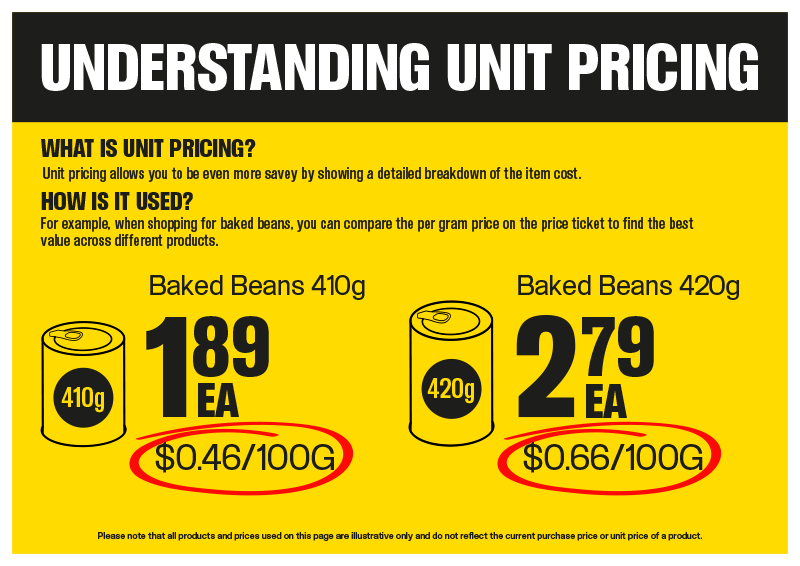 Unit Pricing shows the cost per unit of measure (e.g. per kilogram, per litre, per sheet, per item etc.).