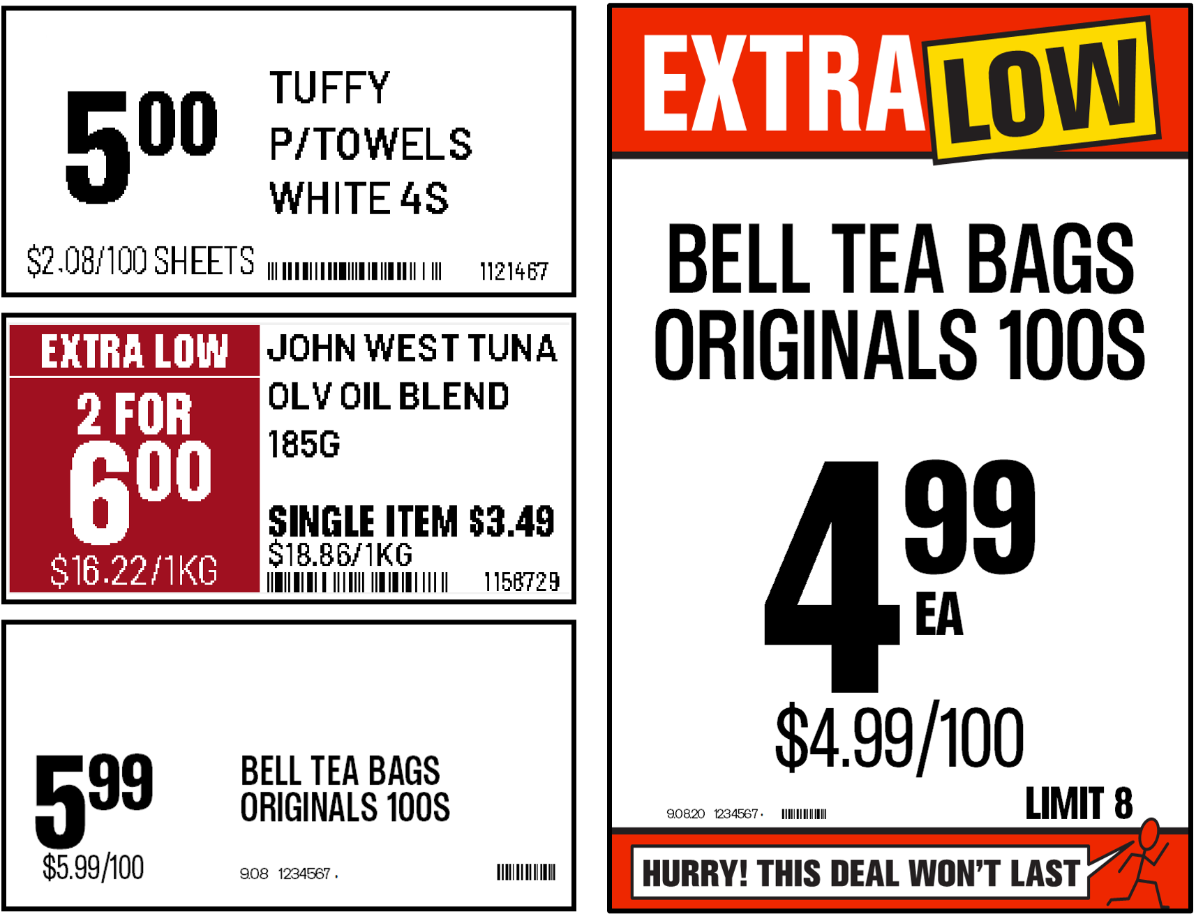 In the example above you can see that the advertised purchase price for Bell Tea Bags Original is $5.50, the unit of measure is per 100 items, so the Unit Price is displayed as $5.50 per 100 items.
