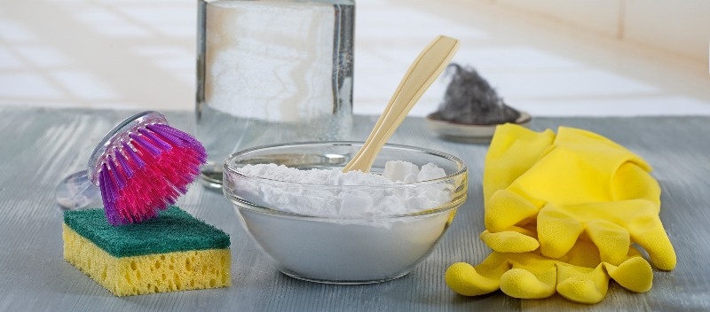 - Baking soda (bicarbonate of soda) – creates a great cream cleanser when mixed with water as a thick paste. Baking soda works best on grease, animal mess, and proteins. It’s only a bit abrasive, so it can scour surfaces without you needing to worry about it scratching. It’s also a natural deodoriser.