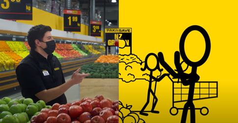 The new campaign sets out to bust the myth that low prices, means less quality and PAK’nSAVE Senior Marketing Manager Lauren Ness says it’s a challenge Stickman and his real-life friends are ready to tackle head on. “This is a tall tale so big, so New Zealand’s heroic Stickman is stepping out of his yellow and black comfort zone for the first time in his 14-year history to clear things up - although not a literal step, or he’d glitch the space-time continuum!” Starting this week, the new ad shows our iconic Stickman reaching out a PAK’nSAVE real life fresh expert to help him to set the record straight. “We deliver New Zealand’s lowest food prices, but sometimes we find that there’s a perception when it comes to quality ‘you get what you pay for,’ which has never been further from the truth at PAK’SAVE. With the help of one of our fresh experts, we’ve tasked Stickman to demonstrate our fresh offering is top quality and remind customers they don’t need to risk paying more for the same stuff at other supermarkets. " "Our customers can be confident we’re focused on delivering New Zealand’s lowest food prices for them every single day. It's true we deliberately compromise on things like having fancy stores and fittings to help us deliver low prices, but we never, ever compromise on the quality of the food.” PAK’nSAVE’s fresh experts can be found in every produce, butchery or bakery section in stores across New Zealand. Dedicated professionals in their field, these experts are committed to delivering the very best fresh offering to their local customers, something Stickman was very keen to leverage in his new campaign. Elliot Winstanley, (screen name Steve), is one of the hundreds of fresh experts in store - and by day works as a Butchery Assistant at PAK’nSAVE Silverdale. He was stoked to be involved and share the message of the quality at PAK’nSAVE. “I mean working with the legendary Stickman is a chance you can’t say no to!” he says. “Our fresh experts are passionate about what they do, and know all the best tricks of the trade. We knew we had to find an amazing expert who could really share all their knowledge with Stickman on his new quest,” Says Lauren. Foodstuffs Marketing & CX commissioned the campaign from their long-term creative agency, FCB. FCB Co-Executive Campaign Directors Leisa Wall and Peter Vegas said, “Stickman has been asking us for years for the chance to shoot an ad in a real store. He was upset when he found out he wouldn’t be getting his own trailer, but cheered up when he discovered the onset catering was all the yummy fresh top quality PAK’nSAVE produce.”