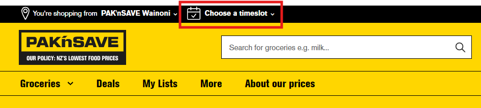 1. Log in or register at paknsave.co.nz or the PAK'nSAVE app then select your preferred store.