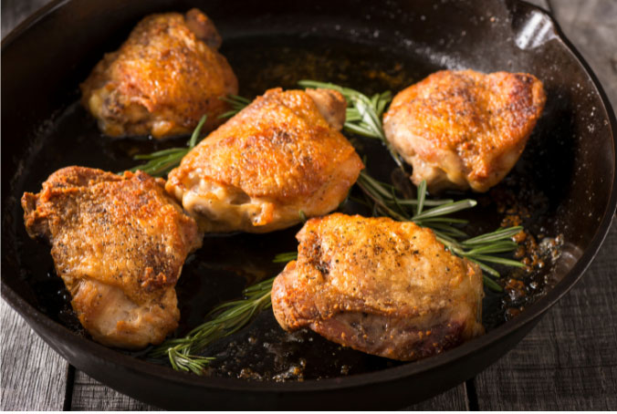 Pan frying chicken thighs