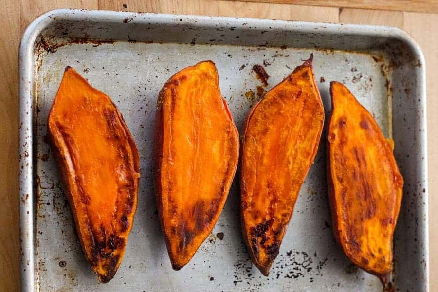 - Sweet potatoes baked in the oven are hard to beat, when topped with some sour cream and chopped chives.