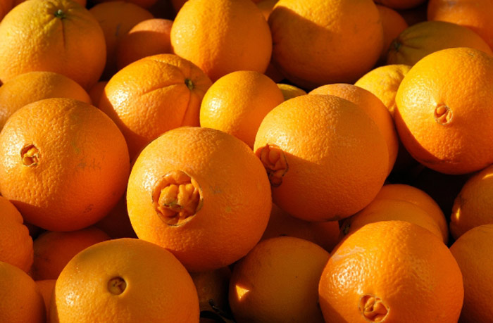 Navel oranges should be round or slightly oval in shape and up to 15cm in diameter. They should feel heavy indicating lots of juice and smell really fresh. The skin should be thick, firm and bright orange, with no blemishes or soft spots. They should be easy to peel by hand and should be seedless or have very few seeds, two features which make them highly desirable.