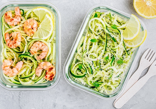 Seafood is a little more challenging for meal prep, because it really is best eaten fresh (and no one likes to be around when someone’s reheated fish in the office microwave!). Because fish cooks fairly quickly, you can easily freeze your fish fillets raw and simply defrost them in the fridge during the day, so they’re ready to be quickly pan fried or baked when you get home. And of course, you can serve it with some fully prepped sides. White fish tends to lose a little flavour when eaten later, so fatty fish like salmon is a great option. Just be sure to eat your fish within two or three days after cooking. Precooked frozen shrimp is another way to add more seafood into your meal plan. Keep them in the freezer and defrost single portions in the fridge the night before you plan to eat them.