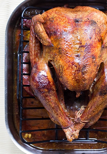 If you don’t have a meat thermometer, simply slice the meat between the leg and breast with a sharp knife. If the juices run clear, it’s good to go.