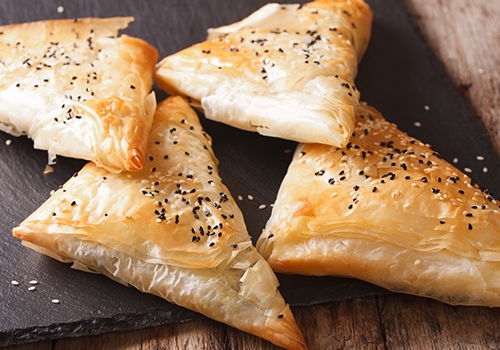 Filo pastry is another popular option, for a pie lid. Because filo pastry is very thin, it’s best used in many layers, each brushed with oil or melted butter. The result is extra crunchy, airy pastry — perfect if you don’t want your pie to be too heavy.