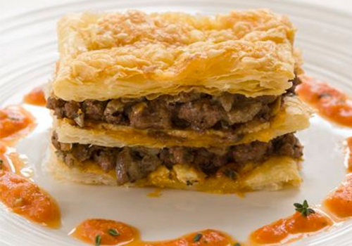 We've turned a famous French dessert, ‘millefeuille’ (a thousand leaves) into a gorgeous savoury creation. It's an open pie packed with delicious French flavoured lamb and moist vegetables that allows your presentation and building skills to run riot. It makes a perfect supper or lunch dish for special occasions.