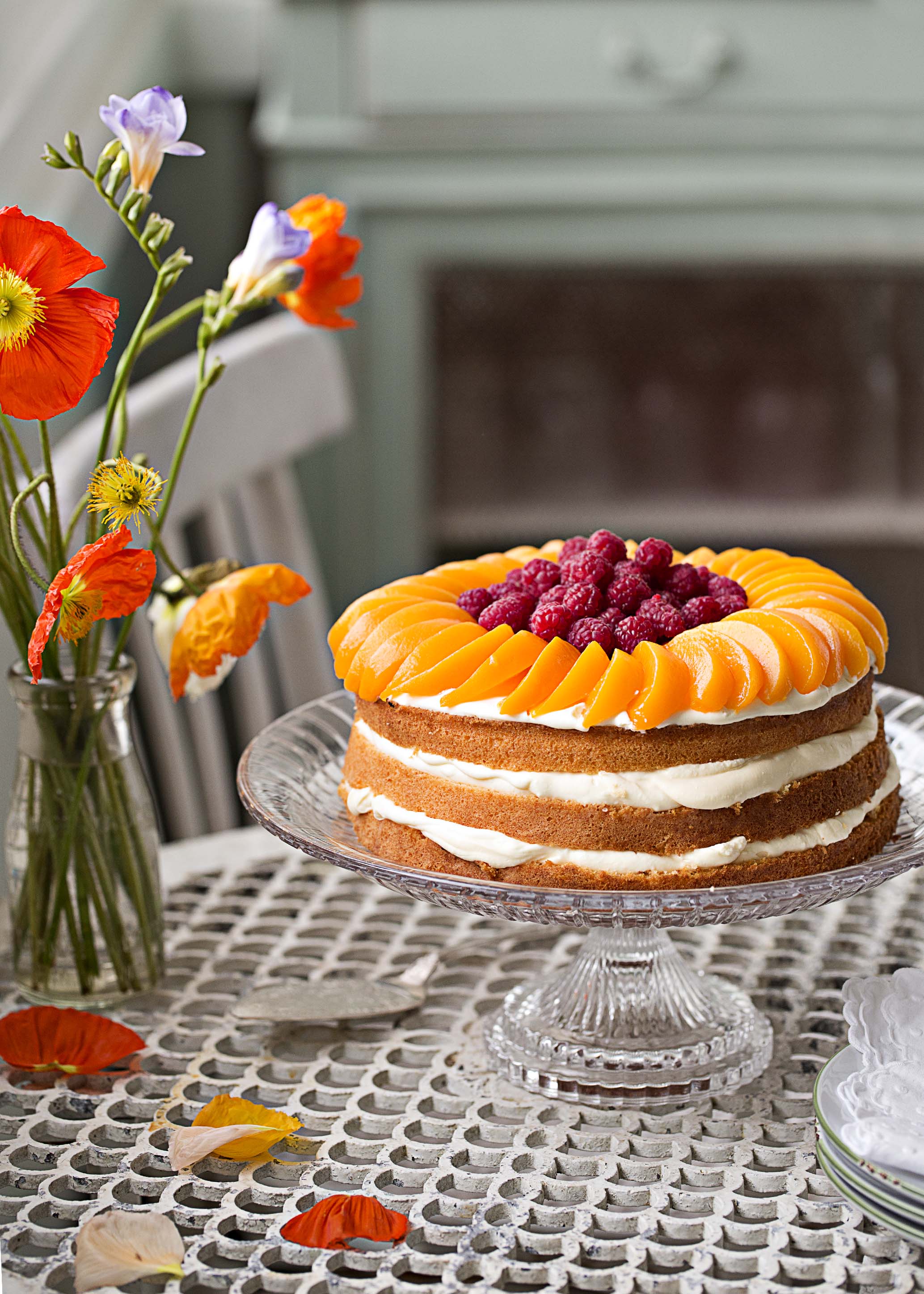 Peaches and Cream Sponge Cake