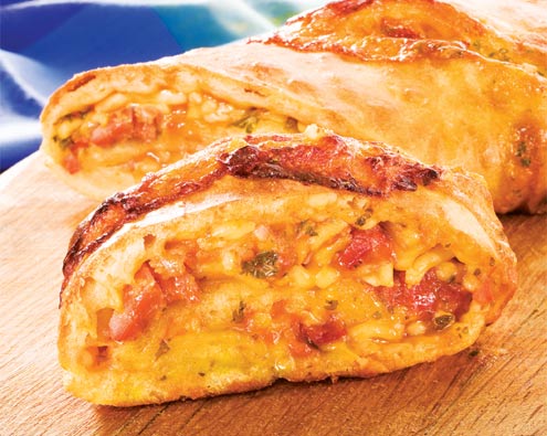 This easy dough recipe is filled with a savoury spaghetti filling, rolled and then baked. Slice and eat while still warm. Everyone will be coming back for more!
